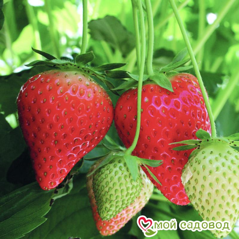 Данный сорт очень раннего срока созревания, голландской селекции. Ягоды крупные, до 50 г, очень правильной конусовидной формы и одинакового размера. Вкус ягод очень сладкий, «карамельного вкуса», отличаются высоким содержанием натуральных сахаров. Преимуществом данного сорта, является его зимостойкость и устойчивость к мучнистой росе. Сорт отличает стабильная степень урожайности: 1-2 кг ягод клубники с одного куста. Селекция неремонтантная, но плодоношение длительное. Конусовидным ягодам характерен ярко-красный цвет. По форме они очень напоминают объемное сердце. Размер клубничек очень крупный: каждая достигает почти 50 граммов веса. Вкус имеет карамельный оттенок и приятную кислинку. Аромат ярко-выраженный, клубничный. Мякоть плотная и сочная. Содержание сахара – до 10%.